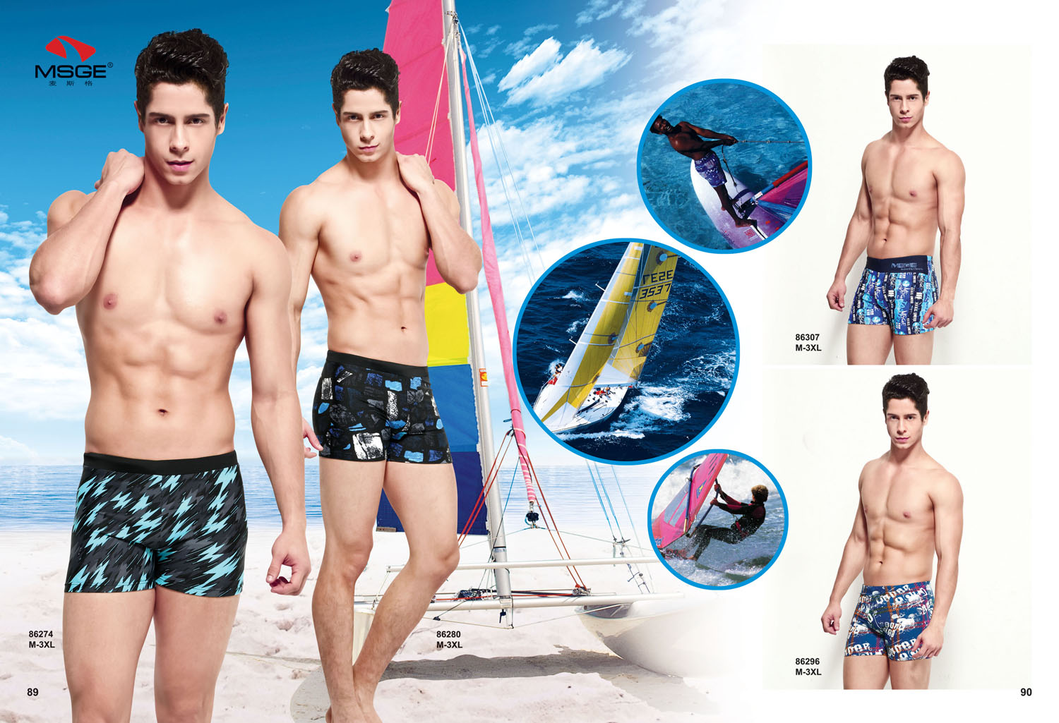 泳装的绚丽多彩,使得泳裤黯然失色。这季泳裤以深蓝色与黑色为主,这两大色系永远能表现出男人的魄力。结合美式几何图案,色泽鲜明,拼接结合工艺,时尚大气。素色上搭配亮色的印花图案。完美呈现男人本色。